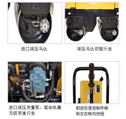 鼎誠公司多年致力于小中型工程機(jī)械的研發(fā)與生產(chǎn),現(xiàn)在推出豪華版手扶式雙鋼輪壓路機(jī),此款機(jī)器采用國外先進(jìn)技術(shù),原裝進(jìn)口液壓馬達(dá),進(jìn)口液壓變量泵,無級變速,雙驅(qū)行走,自重840kg,振動(dòng)力可達(dá)3噸,前輪可液壓轉(zhuǎn)向,配備前進(jìn)后退手柄及左右轉(zhuǎn)向按鈕,工人一只手即可完成此款機(jī)器的操作,就是這么方便,就是這么給力。
