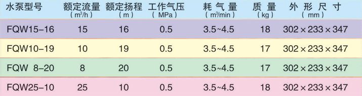 FQW型礦用風(fēng)動(dòng)潛水泵(原BQF、FWQB型)是我公司自行研制開發(fā)的一種新產(chǎn)品,本產(chǎn)品采用轉(zhuǎn)子與泵體同軸聯(lián)結(jié)的機(jī)械產(chǎn)品,采用立式機(jī)構(gòu)、下泵式。執(zhí)行標(biāo)準(zhǔn):Q/JNAT001-2010。煤礦用風(fēng)動(dòng)潛水泵結(jié)構(gòu)緊湊,移動(dòng)、裝拆、維修方便。泵體渦道采用節(jié)能水力模型,葉輪特殊設(shè)計(jì)。該水泵具有排污水能力強(qiáng),流量大,揚(yáng)程高等優(yōu)點(diǎn)。FQW型系列水泵適用于含有瓦斯與煤塵爆炸危險(xiǎn)場(chǎng)所排水作業(yè),可廣泛用于煤礦井下任何作業(yè)面,輸送含有煤粉,泥沙顆粒的地下水,使用安全、可靠,并有效地改善現(xiàn)場(chǎng)空氣質(zhì)量。